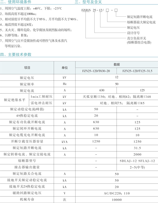 FZ(R)N25-12系列户内高压真空负荷开关(熔断器组合电器)