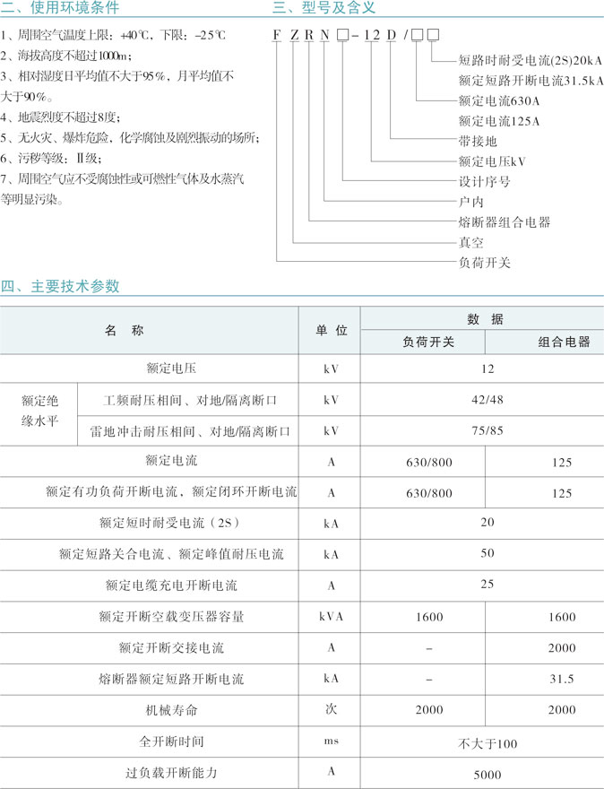 FZ(R)N口-12系列户内高压真空负荷开关(熔断器组合电器