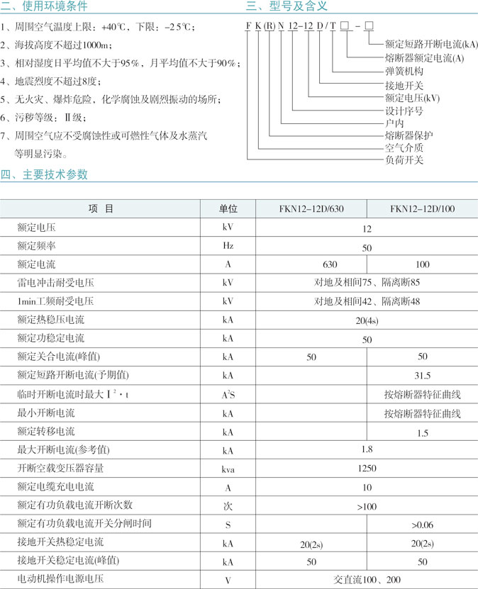 FK(R)N-12系列户内高压压气式负荷开关(熔断器组合电器)