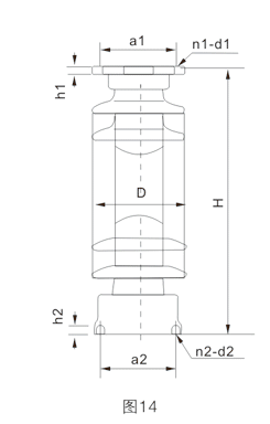 | | | | 型号 | 总高 H | 最大半径 D | 干弧距离 mm | 伞数 | h1 | h2 | 上部安装尺寸 (n1-d1-a1) | 下部分安装尺寸 (n1-d1-a1) | | ZSW-35/4K-2 | 445 | 150 | 345 | 10 | 12 | 14 | 4-Φ14-Φ140 | 4-Φ14-Φ140 | | ZSW2-35/4-4 | 560 | 235 | 405 | 大5小4 | 20 | 14 | 4-M16-Φ127 | 4-Φ18-Φ180 | | ZS-63/5 | 710 | 180 | 565 | 11 | 15 | 20 | 4-M12-Φ140 | 4-Φ18-Φ225 | | ZS-63/4 | 760 | 170 | 627 | 10 | 15 | 14 | 4-M12-Φ140 | 4-Φ14-Φ180 | | ZS-63/15K | 840 | 230 | 628 | 9 | 16 | 20 | 4-Φ18-Φ210 | 8-Φ18-Φ250 | | ZSW-63/4-3 | 850 | 235 | 705 | 15 | 15 | 20 | 4-M12-Φ140 | 4-Φ18-Φ225 | | ZSW-63/8-2 | 850 | 235 | 705 | 12 | 15 | 20 | 4-M12-Φ140 | 4-Φ18-Φ225 | | ZSW-35/4-2 | 445 | 150 | 350 | 10 | 15 | 14 | 4-M12-Φ140 | 4-Φ14-Φ180 | | ZSW3-35/4-2 | 445 | 150 | 351 | 10 | 15 | 15 | 4-M12-Φ140 | 4-M12-Φ140 | | ZSW2-35/10-4 | 560 | 245 | 405 | 大5小4 | 20 | 14 | 4-M16-Φ127 | 4-Φ14-Φ180 |