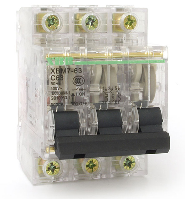 XBM7-63高分断新型小型断路器经过旭变电气多位技术人员长时间的摸索,结合现在电网及电力设备的要求,研发制造的新型断路器,该产品具有过载和断路双重保护特性,灭弧结构与DZ47型断路器不同,该新型断路器具有结构先进、引弧快、燃弧短、性能可靠、分断能力高、外形小巧等特点,壳体和三部件采用耐冲击、高阻燃材料构成。适用于交流50Hz或60Hz,额定电压在230V/400V以下,额定电流为63A以下电力线路设施的场所。主要用于办公楼,住宅和类似的建筑物的照明、配电线路及设备的过载、短路保护、也可在正常情况下,作为线路不频繁的转换之用,该产品符合IE60898和GB10963.1等标准的要求。二、型号及其规格