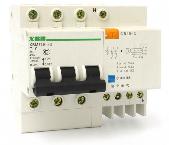 XBM7LE-63系列漏电断路器由XBM7高分断小型断路器和漏电脱扣器拼装而成。该产品适用于交流50Hz,额定工作电压230V~400V,额定电流至100A的线路中,主要由零序电流互感器、电子组件板、漏电断路器及带有过载短路保护功能、还可根据用户的需要增加过压,欠压保护功能用来对人进行间接接触保护,以及对建筑物及类似用途的线路进行过电流保护。也可对由于过电流保护装置不动作而持续存在的接地故障引起的火灾提供保护。带过电压保护的漏电断路器还能对由于电网故障引起的电压过高进行保护。XBM7LE漏电断路器在低压配电系统中已经越来越多地被采用作为接地故障和直接接触、间接接触电击的后备保护。该产品主要用于建筑照明和配电系统的保护,符合GB16917.1和IEC61009-1标准的要求。我司已通过国家CCC、CE认证。