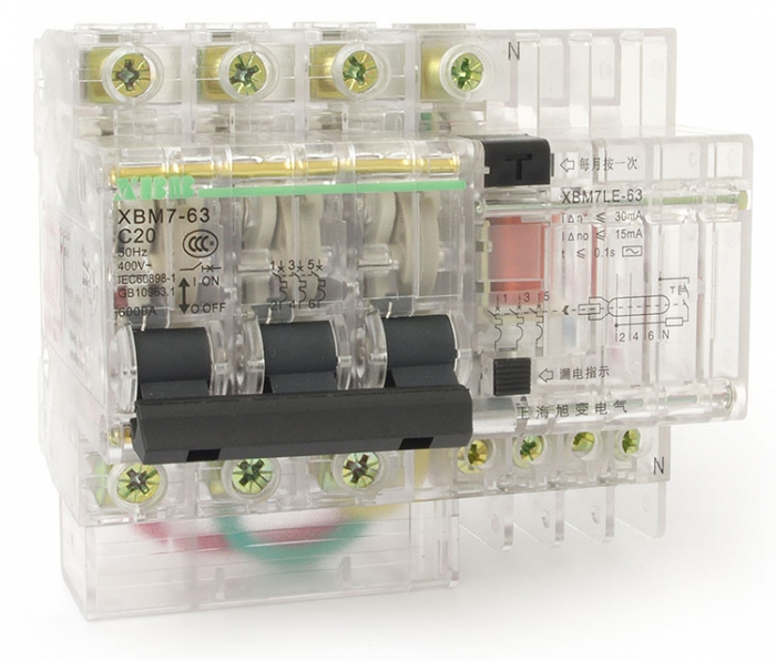 XBM7LE-63系列漏电断路器由XBM7高分断小型断路器和漏电脱扣器拼装而成。该产品适用于交流50Hz,额定工作电压230V~400V,额定电流至100A的线路中,主要由零序电流互感器、电子组件板、漏电断路器及带有过载短路保护功能、还可根据用户的需要增加过压,欠压保护功能用来对人进行间接接触保护,以及对建筑物及类似用途的线路进行过电流保护。也可对由于过电流保护装置不动作而持续存在的接地故障引起的火灾提供保护。带过电压保护的漏电断路器还能对由于电网故障引起的电压过高进行保护。XBM7LE漏电断路器在低压配电系统中已经越来越多地被采用作为接地故障和直接接触、间接接触电击的后备保护。该产品主要用于建筑照明和配电系统的保护,符合GB16917.1和IEC61009-1标准的要求。我司已通过国家CCC、CE认证。