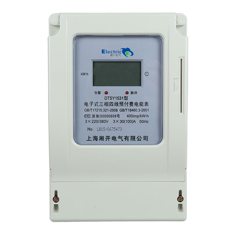 DTSY1531三相四线电子式预付费电能表是我公司推向市场的新型电能计量产品.它采用专用集成电路计量,先进的单片机处理系统进行数据处理及SMT制造工艺,使之性能及测量准确度得到可靠保证.该产品各项性能均符合GB/T17215-2002和GB/T18460-2001国家标准.该产品适用于频率为50Hz单相交流有功电能计量,预付费以及计算机联网等.适合于环境温度为-20~+60℃湿度不大于85%的室内或室外电表箱内使用.二.功能及特点